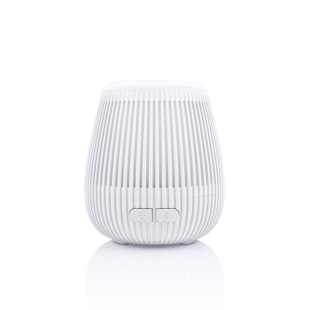 Ультразвуковий аромадифузор працює за принципом ультразвукових хвиль, які забезпечують випаровування суміші води та ефірних олій. Унаслідок цього утворюється тонка холодна пара, яка розсіюється кімнатою. Ви можете вибрати аромат на свій смак, додавши ефірні олії, щоб викликати приємні відчуття. Без додавання ефірної олії аромадифузор можна використовувати як зволожувач повітря. Для створення потрібної розслаблювальної атмосфери дифузор обладнаний приємною світлодіодною підсвіткою семи кольорів.