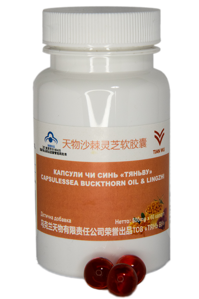 Олія червоної обліпихи + масло спор гриба рейші в капсулах Чи Синь. Ефективний для серця та судин.